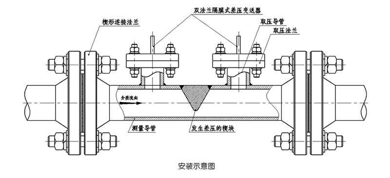1.保证紧邻楔形流量计上游管道内流体流动接近典型的充分发展的紊流流动状态且无旋涡。