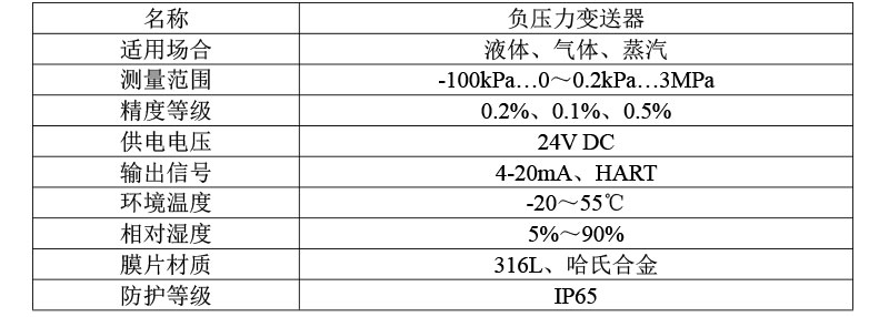 电容式负压变送器及远传差压变送器是差压变送器中的新产品。广泛用于石油、化工、冶金、电力、轻工、建材、科研等企事业单位,实现对各种流体压力的测量,配用节流装置可检测液体、汽体和蒸汽,以及粘性、沉淀性或易产生结晶颗粒的流体的流量,也可以检测差压,表压和分界面,还可以检测开口容器或受压容器内液体的液位。