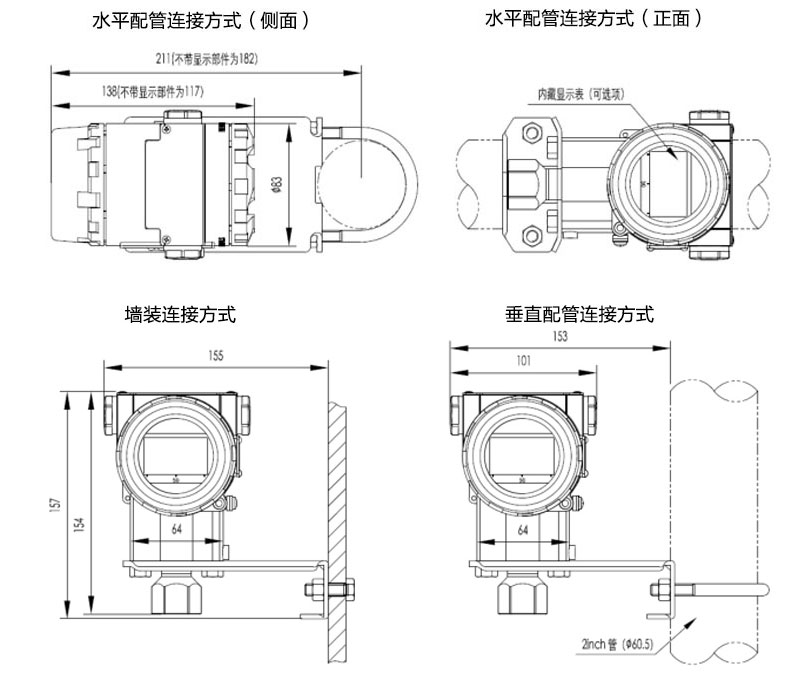 ●双膜片过载结构,从容应对高过载考验 ●用集成电路与表面封装技术的信号变送模块,性能强大的24位ADC实现高精 度与快速应答 ●显示模块可355°旋转,按键参数操作功能友好 ●按键参数设置不影响电气防护等级,更安全、更快捷 ●坚固优质的不锈钢过程法兰,臻厚的加强结构,坚不可摧,高静压、高过载 的强大保障