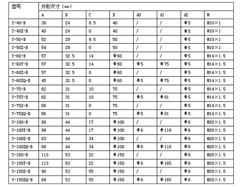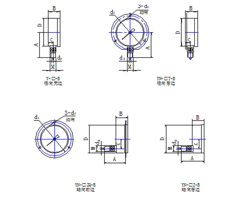 ●径向全不锈钢压力表精度 ±2.0% ●表壳尺寸 100mm(4.25英寸) ●表壳材质 304不锈钢 ●表壳形式 安全壳构造,隔板装置后释放 ●及接体 316不锈钢管同316不锈钢接体氩弧焊接 ●机芯 316不锈钢 ●连接形式 M20×1.5 或 1/2 NPT 底部连接,或背部连接(径向全不锈钢压力表/轴向全不锈钢压力表) ●测量范围 -0.1~0 MPa,0.1~100MPa,160MPa,350MPa ●指针 普通 ●表玻璃 有机玻璃、安全型双层玻璃全不锈钢压力表 ●充填材质 甘油98%(可选择硅油、氟油或其它类别) ●防护等级 IP 65 ●温度环境及工作介质温度不应超过: ●充液型径向全不锈钢压力表 0~140℉; ●普通型径向全不锈钢压力表 -46~145℉