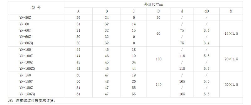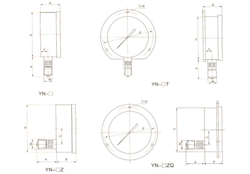 ●径向全不锈钢压力表精度 ±2.0% ●表壳尺寸 100mm(4.25英寸) ●表壳材质 304不锈钢 ●表壳形式 安全壳构造,隔板装置后释放 ●及接体 316不锈钢管同316不锈钢接体氩弧焊接 ●机芯 316不锈钢 ●连接形式 M20×1.5 或 1/2 NPT 底部连接,或背部连接(径向全不锈钢压力表/轴向全不锈钢压力表) ●测量范围 -0.1~0 MPa,0.1~100MPa,160MPa,350MPa ●指针 普通 ●表玻璃 有机玻璃、安全型双层玻璃全不锈钢压力表 ●充填材质 甘油98%(可选择硅油、氟油或其它类别) ●防护等级 IP 65 ●温度环境及工作介质温度不应超过: ●充液型径向全不锈钢压力表 0~140℉; ●普通型径向全不锈钢压力表 -46~145℉
