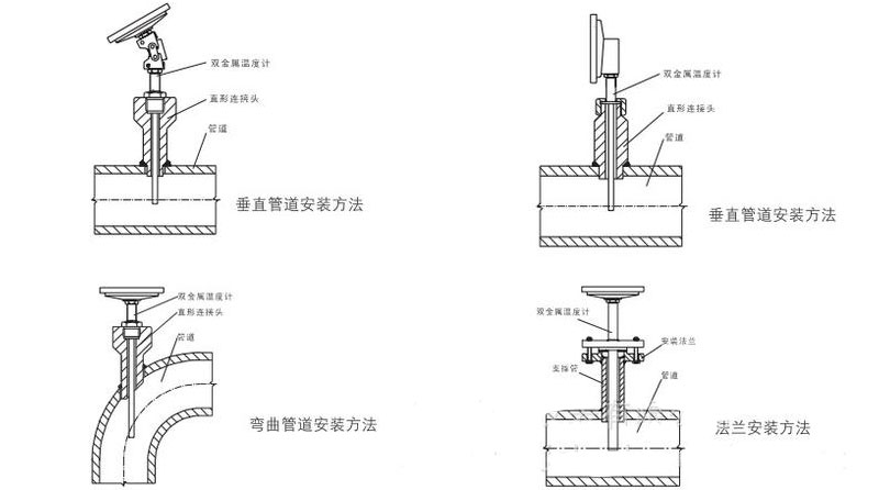 双金属温度计把两种线膨胀系数不同的金属组合在一起,一端固定,当温度变化 时,两种金属热膨胀不同,带动指针偏转以指示温度,这就是双金属片温度计,测温范围为-80~500度,它适用于工业上精度要求不高时的温度测量。双金属片作为一种感温元件也可用于温度自动控制。